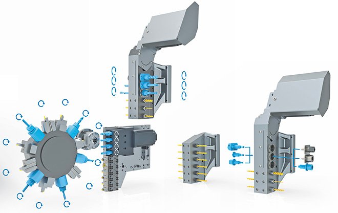 MANURHIN K'MX 620 è stata progettata per la lavorazione produttiva di pezzi da barre con diametro massimo di 16 mm e 20 mm.